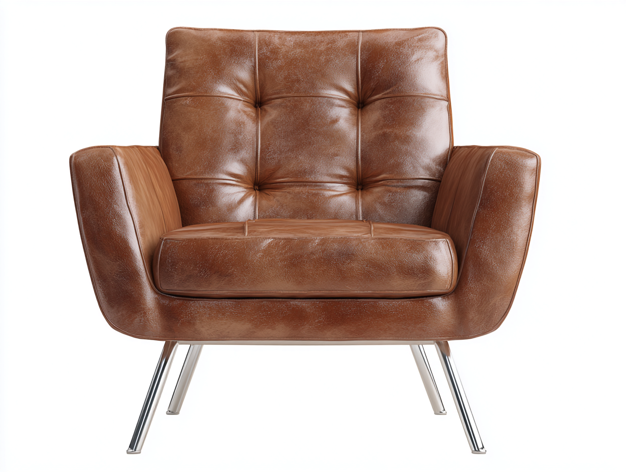 La seduta e lo schienale sono rivestiti in similpelle di colore marrone, con una superficie liscia e facile da pulire. L'imbottitura interna garantisce un supporto equilibrato. La base è realizzata in materiale sintetico rinforzato di colore nero ed è dotata di ruote per una mobilità agevole.